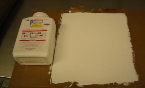 Here's the Plaster of Paris which we used, as well as cardboard painted in gesso (3 coats!).